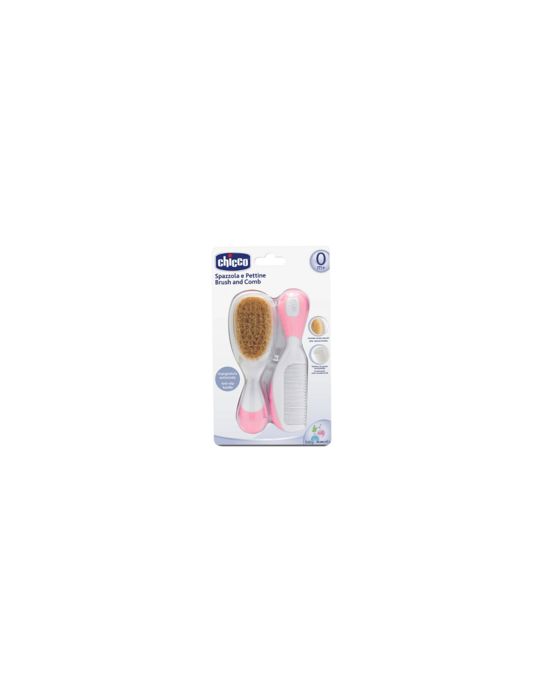 Este peine y cepillo para bebés de Chicco® permite un suave cepillado gracias a sus cuerdas naturales, especialmente pensadas para la cabecita del niño, conpuntas redondeadas que evitan arañazos accidentales.